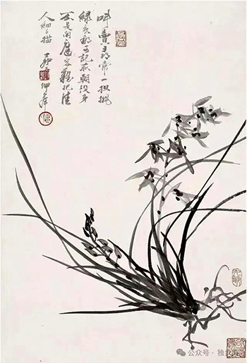 一 画兰何必太矜奇,(清)李方膺 自有横斜百变姿。(清)何绍基 风叶雨花随意写,(清)吴昌硕 闲拈湘管对题诗 (明)陆 深