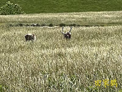 麋鹿在远处,高扬着头上的角