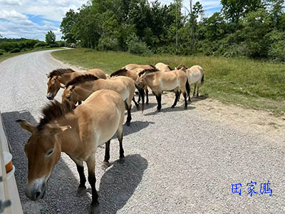 一群野马拦在土路中间