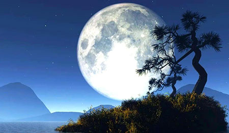 “月亮环绕着地球旋转,随着方向与位置的变换,月亮和月光在地球上呈现出万象景致。