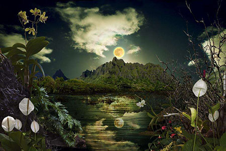 “月光下,大地是寂静的,因为是在夜晚。但在有些时候,在有些地方,月光下也有热闹的时候,各种昆虫在夜晚齐鸣,小溪在山涧快乐的奔流,小河在月光下轻声地流淌,大江大河在月光下奔涌,气势宏大,一泻千里;水面上泛着波光,一闪一闪,美妙极了;潮汐到来,大海躁动,光影闪现,景象万千。