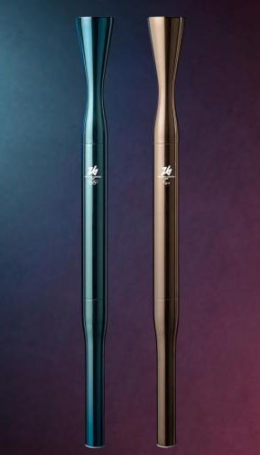 | 火炬 名为“Essential”,寓意回归火炬的本源——以火焰为核心,通过简洁造型突出火炬传递的象征意义。火炬重约1060克,其设计突出环保理念,使用可回收材料制作,可重复加注燃料使用最多10次。此外,燃料采用生物液化石油气,原料主要为回收食用油、动物脂肪及农业废弃物,进一步降低碳排放。火炬握柄处嵌有超轻聚合材料,外层则通过物理气相沉积技术处理,从而得以跟随外部环境光线实现色彩变化的视觉效果。 火炬设有冬奥会和冬残奥会两个版本,二者均采用带有反光效果的虹彩表面处理工艺,不过在颜色上有所差异:冬奥会火炬呈现蓝绿色调,冬残奥会火炬则选用古铜色调。不同颜色寓意不同精神内核。奥运火炬的色调象征意大利多变的自然风光,代表运动、希望与变革;残奥火炬的色调则致敬残奥运动员的坚韧意志与改变世界的勇气。