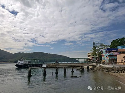马湾1868没有柔软的金色长沙滩(仅有小一段不规整的杂石浅滩),但有个耐寂寞的清静小码头,绿色的蓬盖栈桥一直从岸边伸入海中,还有游船在开行,只是班次很少。