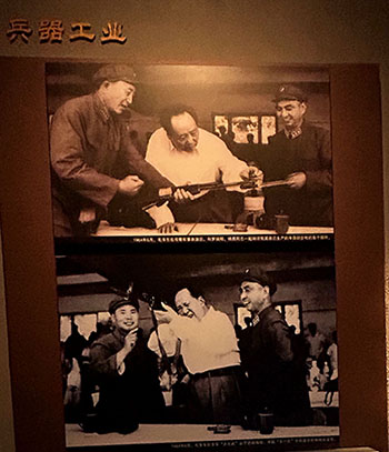 毛泽东主席和罗瑞卿、杨勇一起观看我国自己生产的半自动步枪